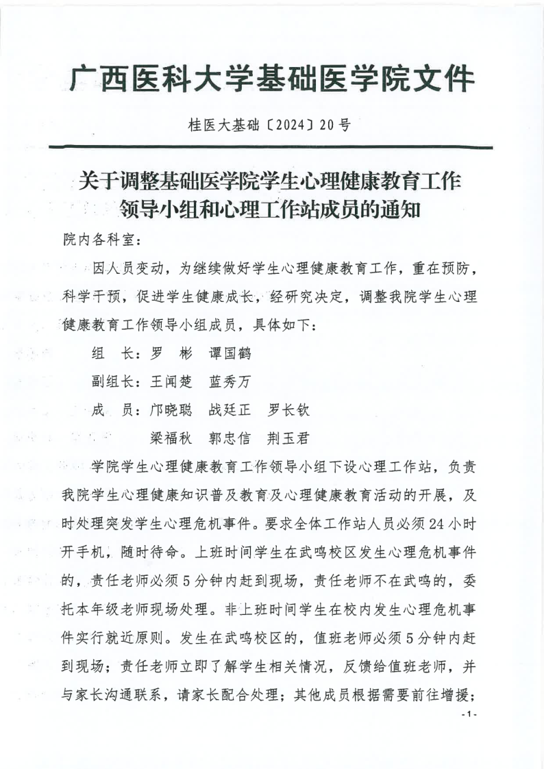 关于调整beat365英国官网网站员工心理健康教育工作领导小组和心理工作站成员的通知