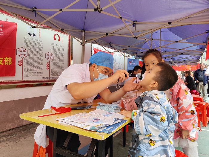 图为beat365英国官网网站附属武鸣医院义诊团队为居民提供义诊服务