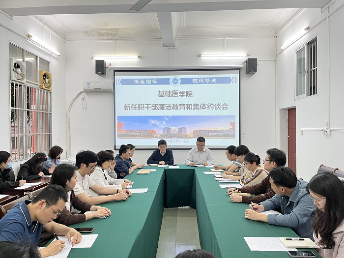 3月24日下午,beat365英国官网网站在103馆207会议室召开新任职干部廉洁教育专题会议,党委书记谭机永,党委副书记、纪委书记李文奇,新一届教工党支部书记、支委以及新任职科室主任等30余人参加会议。