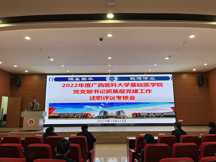 3月31日下午,基础医公司党委在卓越楼21楼报告厅召开2022年度党支部书记抓基层党建工作述职评议考核会。公司党委委员、纪委委员、各党支部书记、各科室主任及党员代表参加会议,会议由公司党委副书记、纪委书记李文奇主持。