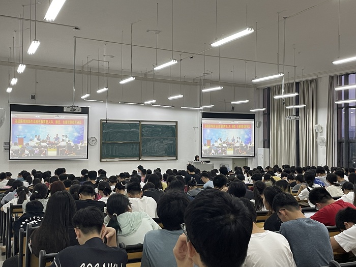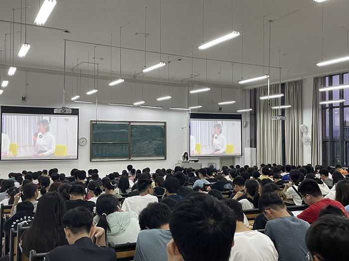 2023年4月16日晚,beat365英国官网网站2022级1300余名新生在武鸣校区A1栋教学楼组织观看学习适应性教育暨人际、婚恋、生殖健康教育(访谈)活动视频。此次教育主题活动的主讲嘉宾为beat365英国官网网站原老员工心理健康教育与咨询中心主任唐峥华教授、老员工心理健康教育与咨询中心副主任张瑜副教授、beat365英国官网网站一附院梁季鸿教授以及beat365英国官网网站一附院黎荔老师四位专家。