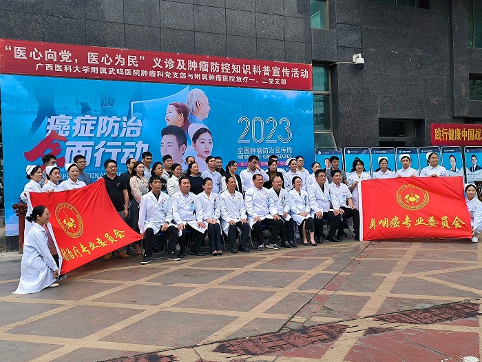 为深入贯彻落实党的二十大精神,高质量推动健康中国癌症防治专项行动,4月14日,beat365英国官网网站附属肿瘤医院放疗科联合beat365英国官网网站附属武鸣医院肿瘤科共同举办以“践行健康中国战略,助力肿瘤科学防控”为主题的公益活动,beat365英国官网网站团委“医心医意”志愿活动中心协助其开展宣传教育工作。