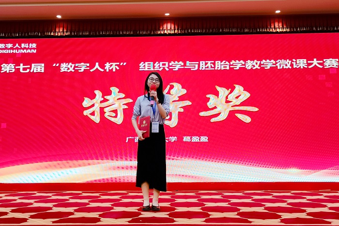 2023年4月28-30日,中国解剖学会第十七届理事会组织胚胎学分会第一次全委会暨第七届“数字人杯”组织学与胚胎学教学微课大赛在福建莆田隆重举行,来自全国各大医学高校的教师参加比赛。经过预赛的层层筛选,优中选优,共计来自南方医科大学,中国人民解放军陆军军医大学,空军军医大学等13位选手入围决赛。现场经过激烈角逐,公司组织学与胚胎学教研室葛盈盈老师在比赛中表现优异,获得现场专家和委员的一致好评,获全场最高分,荣获特等奖。