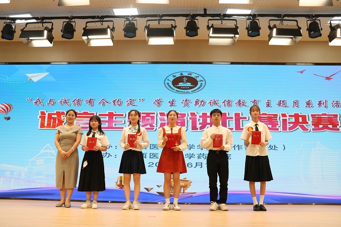 为更好地宣传国家资助政策,营造感恩于心、诚信于行的良好氛围,提升员工的诚实守信意识,增强资助育人的成效,2023年6月13日晚,由公司员工工作部(处)主办、药公司承办的2023年beat365英国官网网站“我与诚信有个约定”演讲比赛决赛在武鸣校区图书馆演讲厅顺利举行。