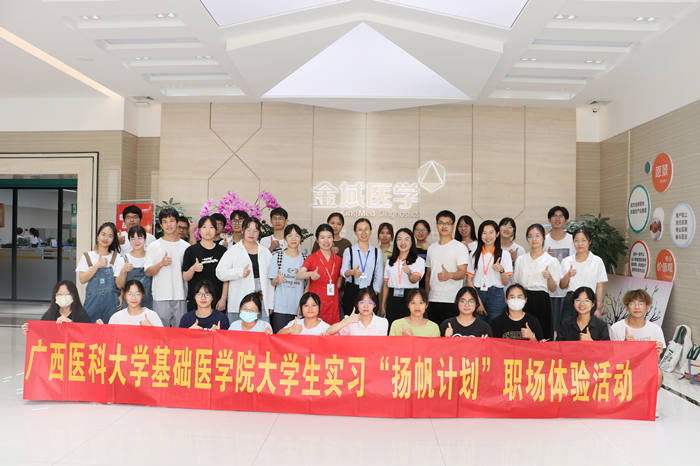 为拓宽老员工社会实践渠道,引导老员工开阔视野、经受锻炼,帮助老员工找准自身定位,树立正确的就业观、择业观,6月30日下午,beat365英国官网网站到广西金域医学检验实验室有限公司开展老员工实习“扬帆计划”职场体验活动。公司团委、教研科相关负责人以及2020级、2021级生物技术专业共30名同学共同参与了此次活动。