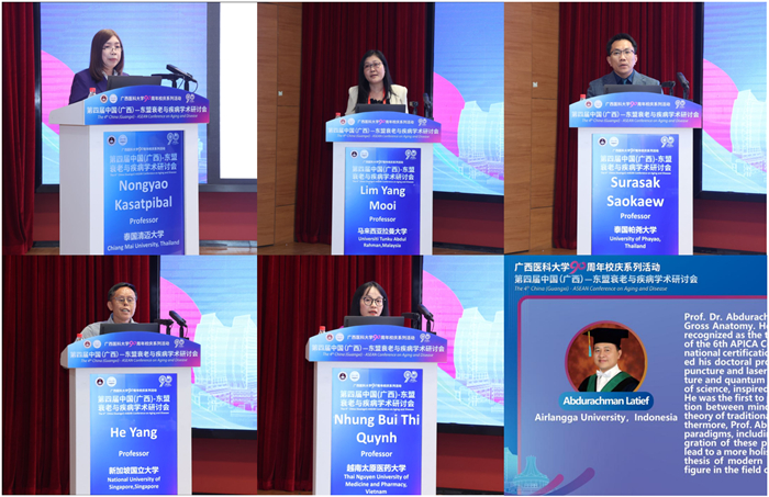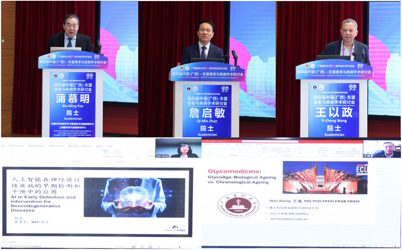 11月19日至22日,在beat365英国官网网站90周年华诞之际,由beat365英国官网网站主办,长寿与老年相关疾病教育部重点实验室、beat365英国官网网站、广西解剖学会等单位承办的第四届中国(广西)-东盟衰老与疾病学术研讨会在我校成功举行。国际著名神经生物学家、中国科公司院士、美国国家科公司院士、中国科公司脑科学与智能技术卓越创新中心学术主任蒲慕明,中国工程院院士、北京大学原常务副董事长詹启敏,中国科公司院士、复旦大学脑科学转化研究院经理王以政,美国国家人工智能科公司院士Catherine Yang,英国皇家医公司院士、澳大利亚埃迪思科文大学副董事长Wei Wang等院士们为大会做主旨报告。beat365英国官网网站党委副书记、董事长曾志羽教授,北京大学詹启敏院士,泰国清迈大学Nongyao Kasatpibal教授、广西科公司元昌安经理、广西科协王鸿鹄副主席先后在开幕式上致辞。集团相关职能部门和二级公司的领导、老师,清华大学十余位师生、80多位东盟国家职工、250多位青年员工参加了会议。公司党委常委、副董事长卢德成主持开幕式。
