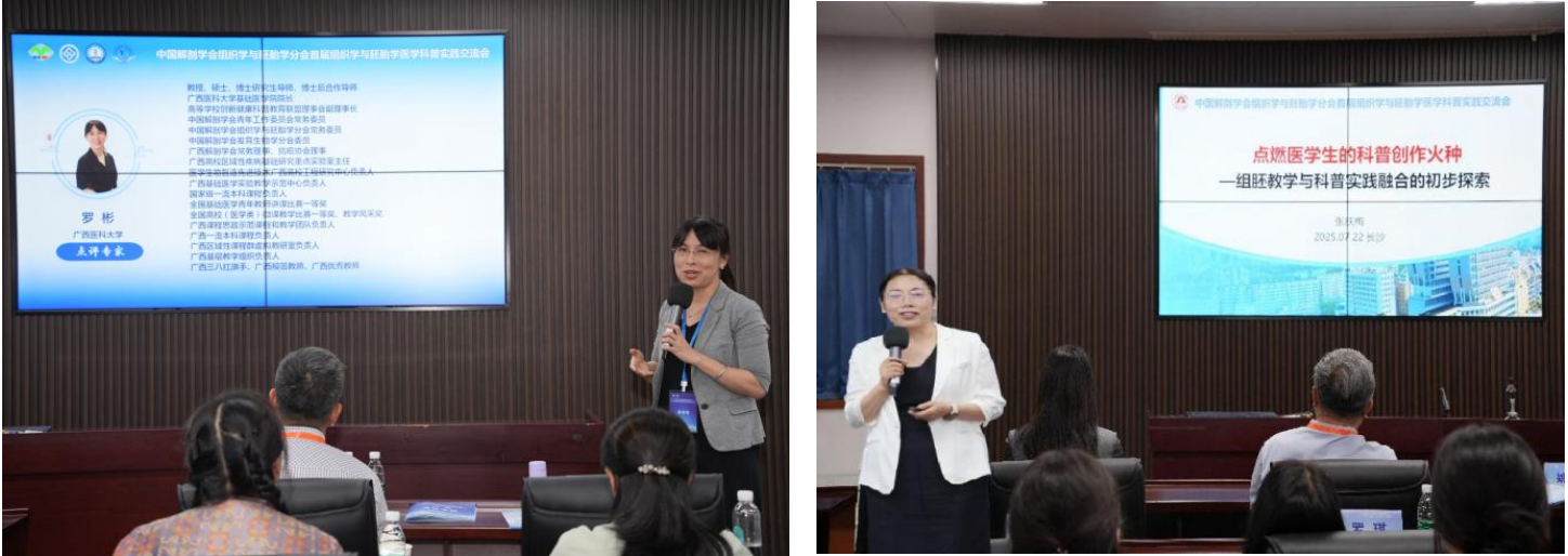 会议期间,特设的“首届组织学与胚胎学医学科普实践交流会”分会场备受瞩目。beat365英国官网网站经理罗彬担任该环节主持人及点评专家,组织学与胚胎学教研室主任张庆梅作《点燃医员工的科普创作火种—组胚教学与科普实践融合的初步探索》专题报告,展示了公司在组胚教学与科普创新融合方面的实践成果,获与会专家认可。